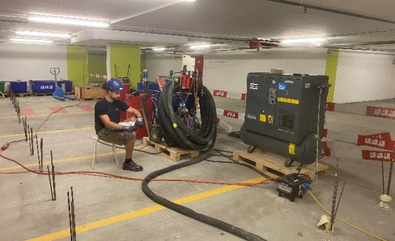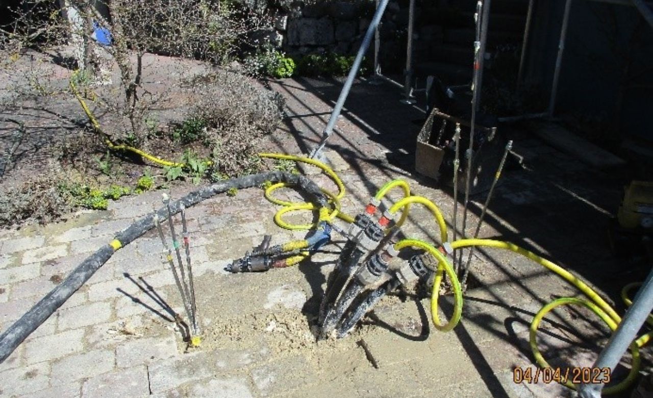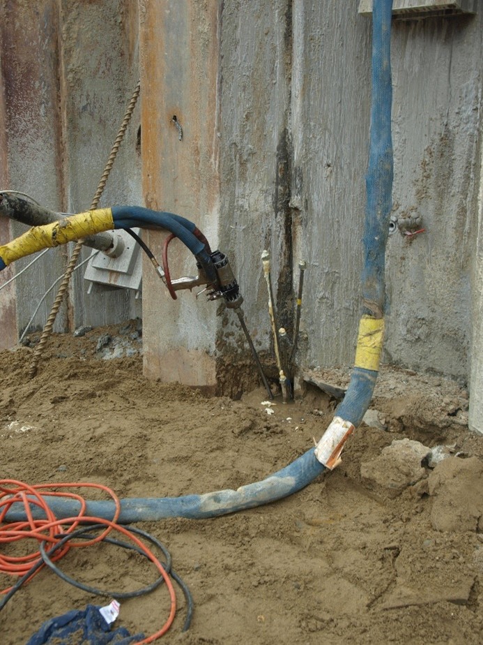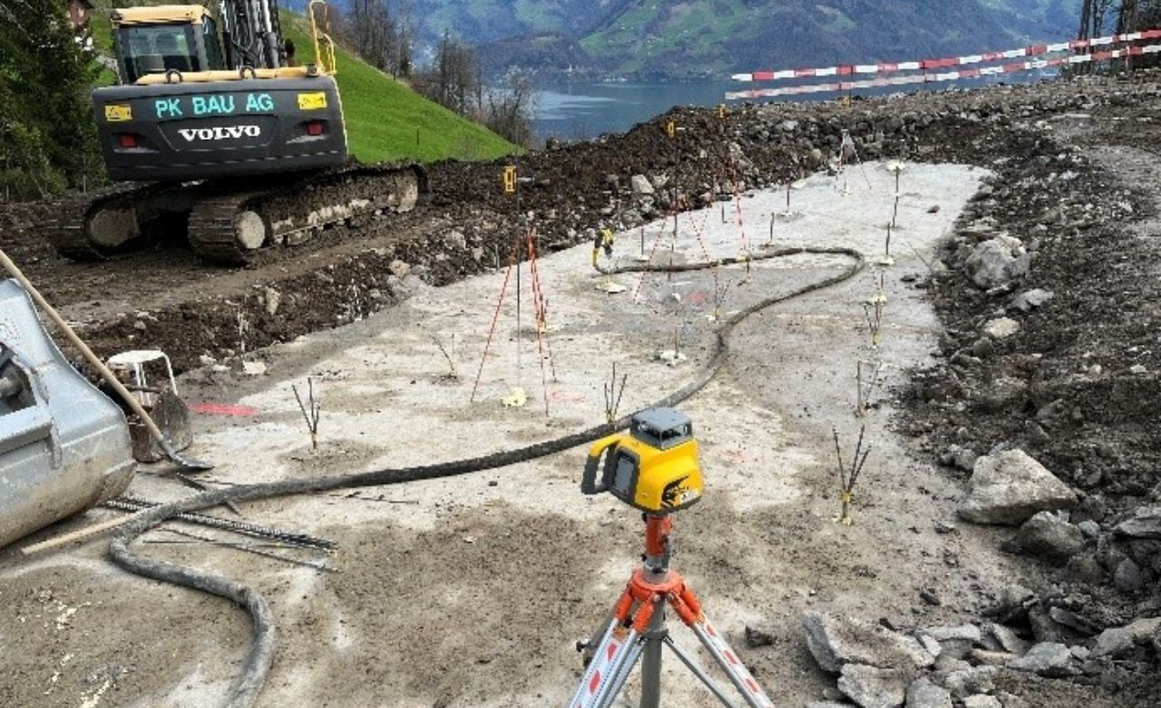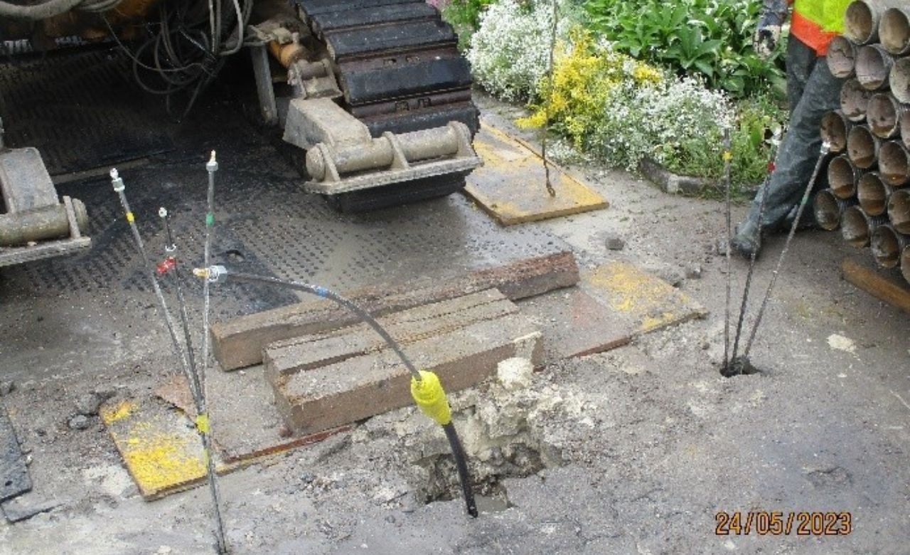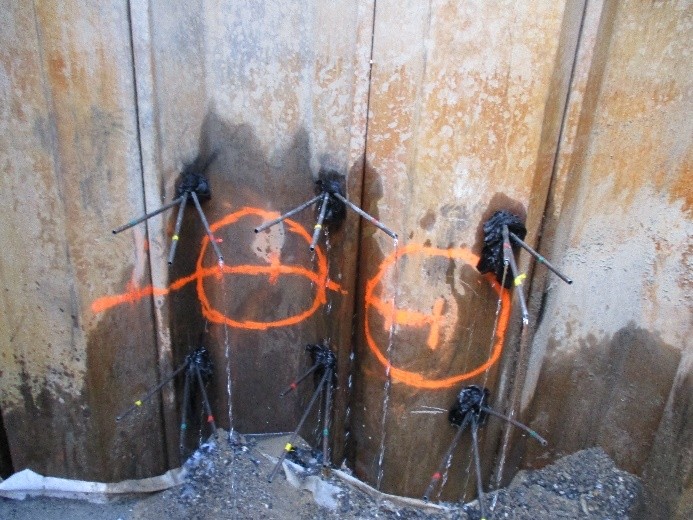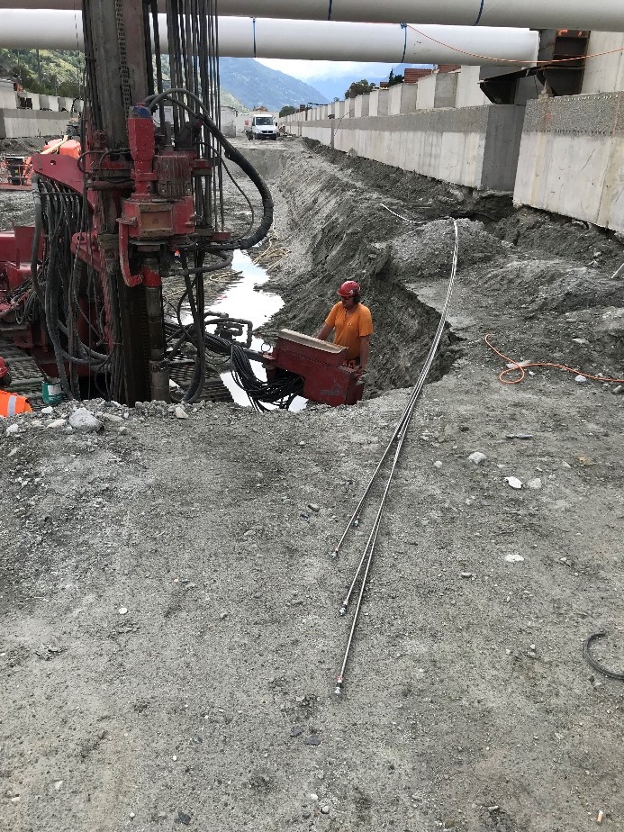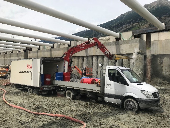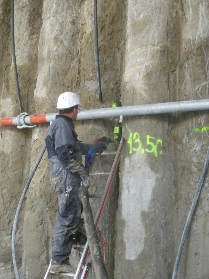 Die Injektionslanzen werden durch Vorbohrungen (Ø 32 mm) im Baugrund platziert. Nach Abschluss der Injektionsarbeiten bleiben die Lanzen auf Höhe OK Boden abgekappt im Baugrund und sind nicht nachinjizierbar.
