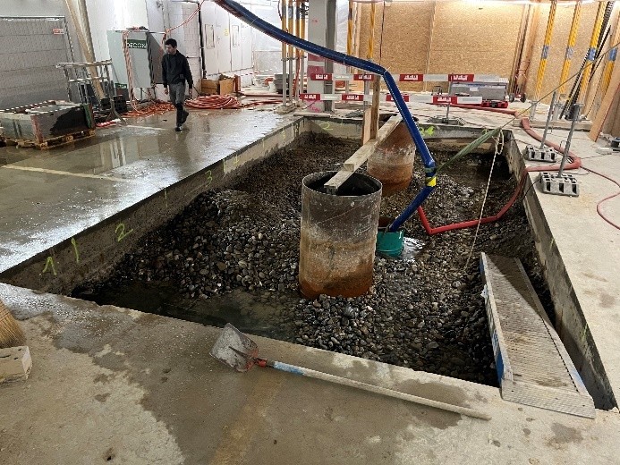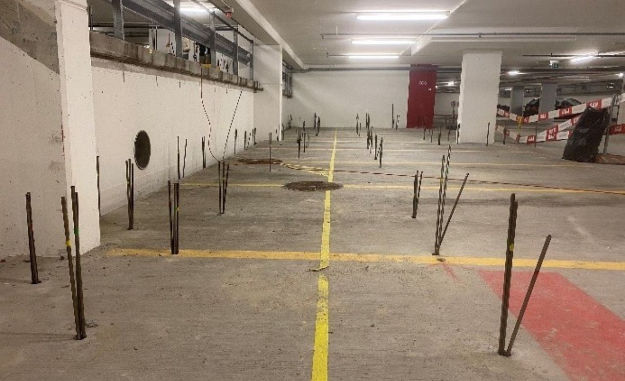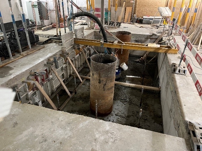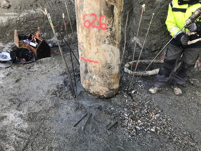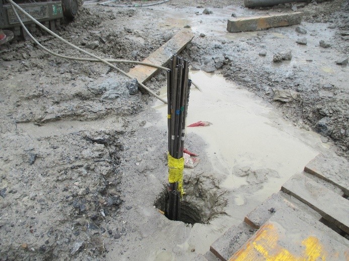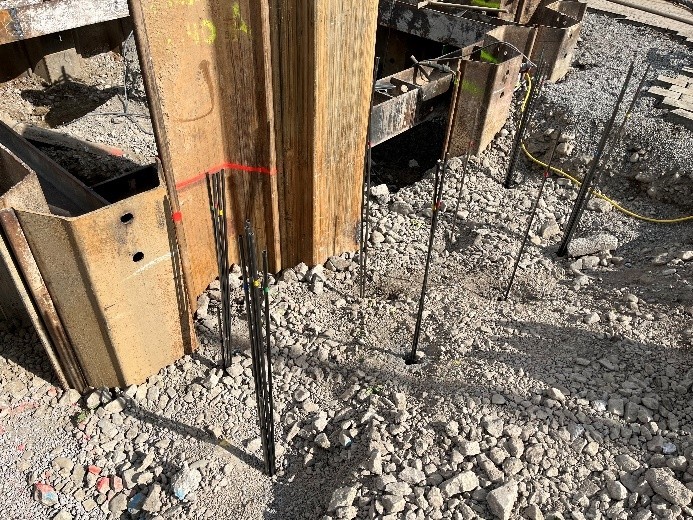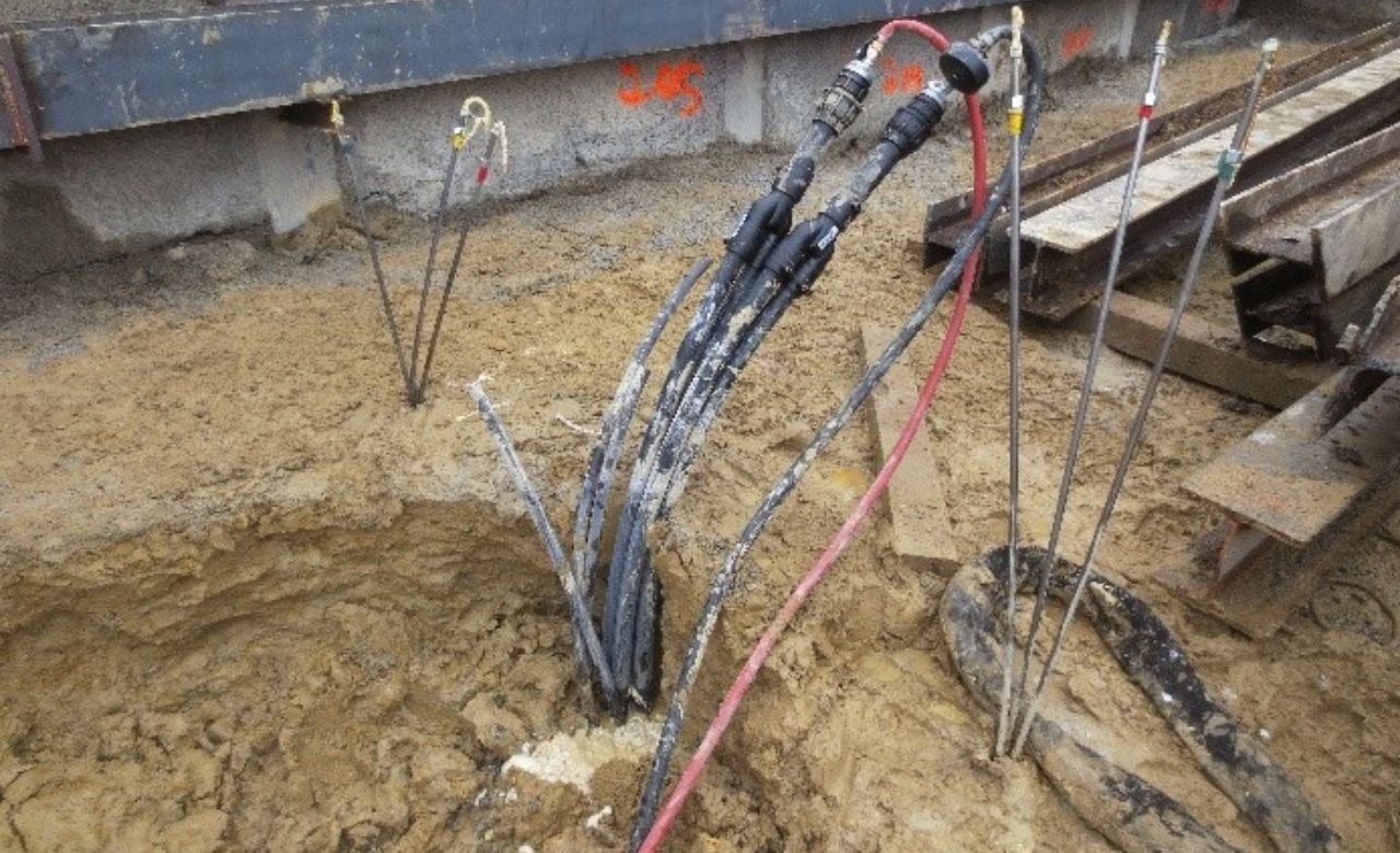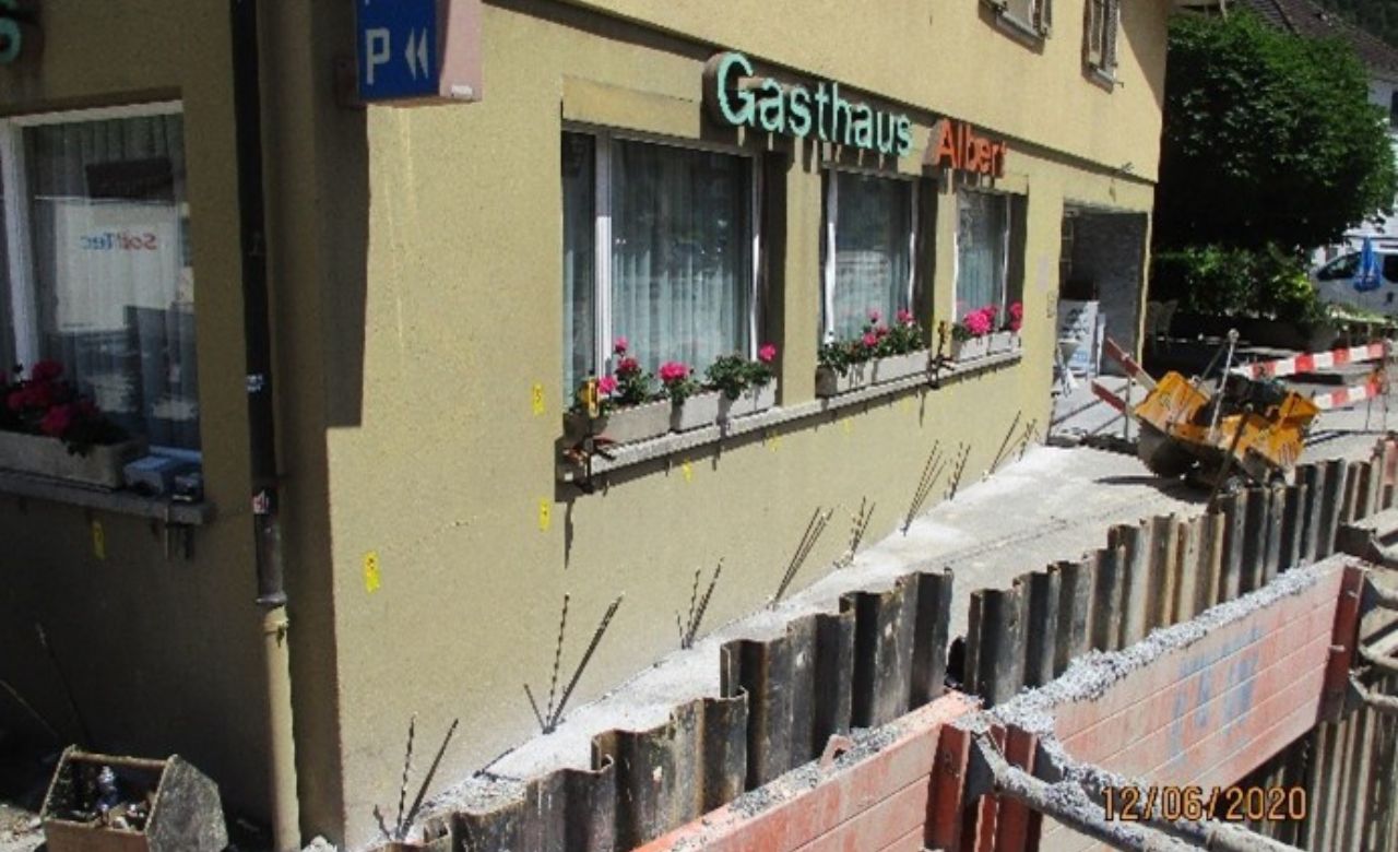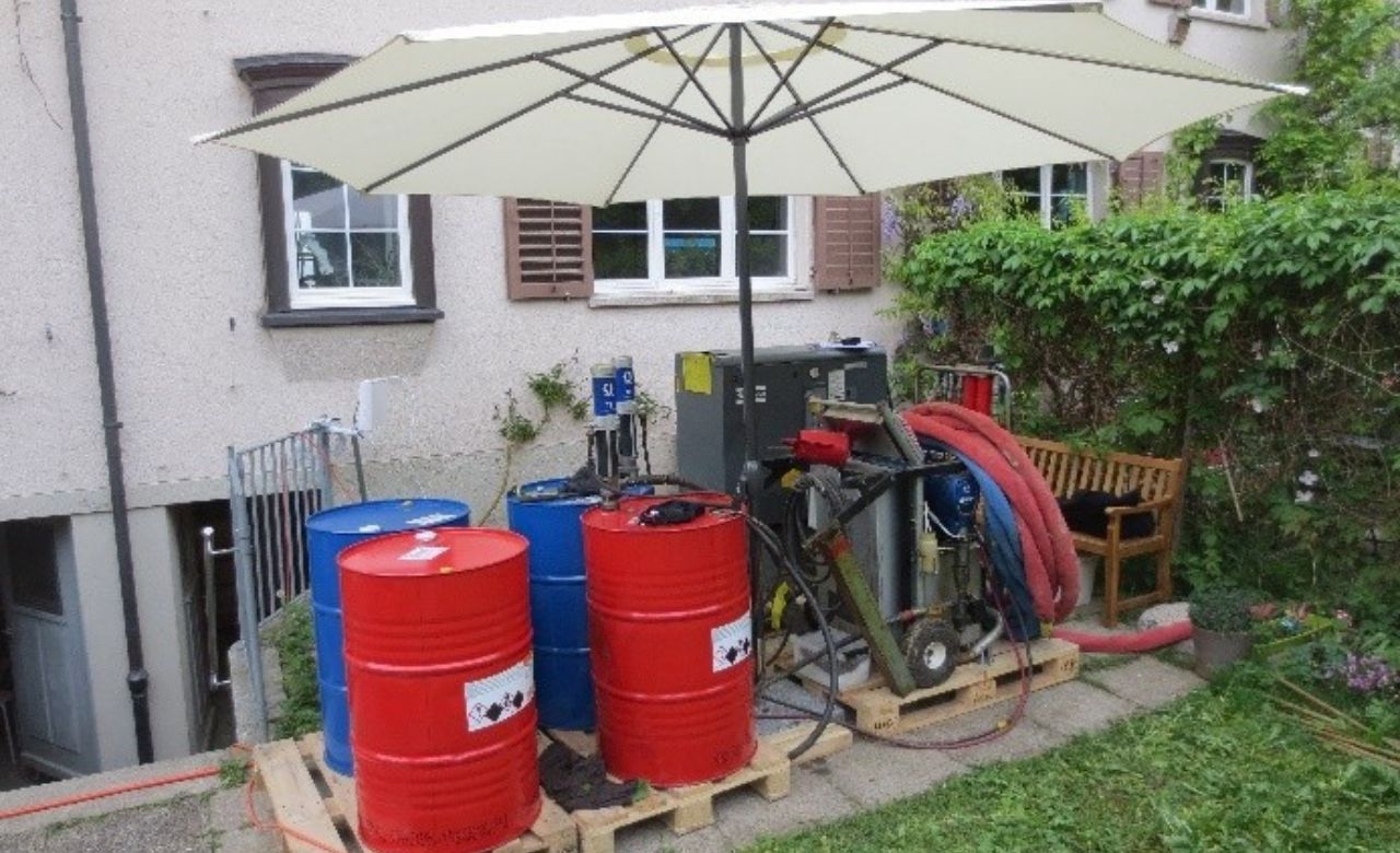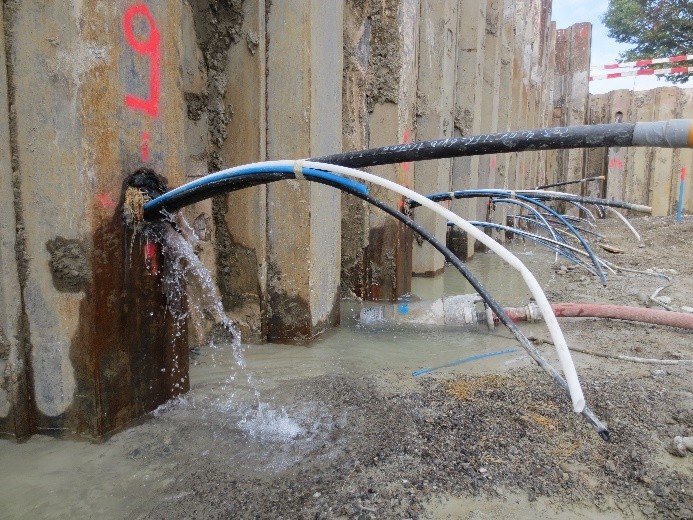Die Injektionslanzen werden durch Vorbohrungen (Ø 32 mm) im Baugrund platziert. Nach Abschluss der Injektionsarbeiten bleiben die Lanzen auf Höhe OK Boden abgekappt im Baugrund und sind nicht nachinjizierbar.