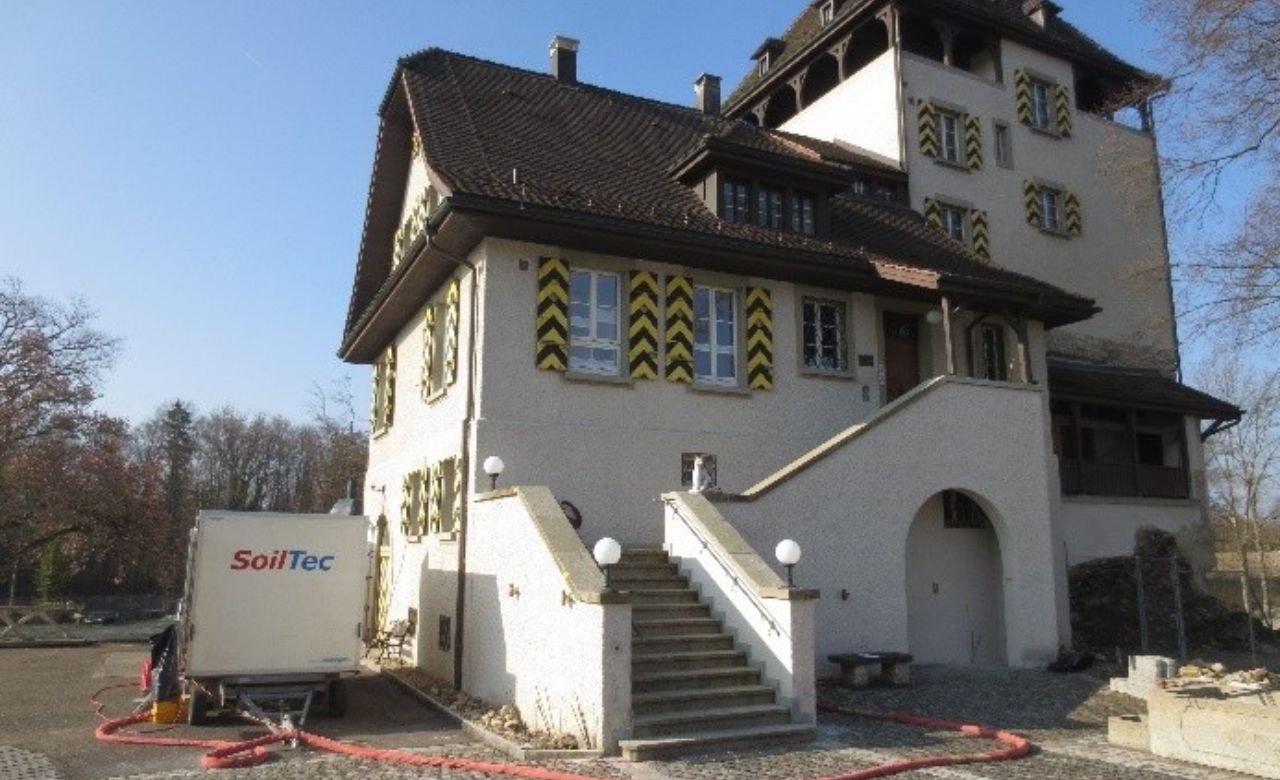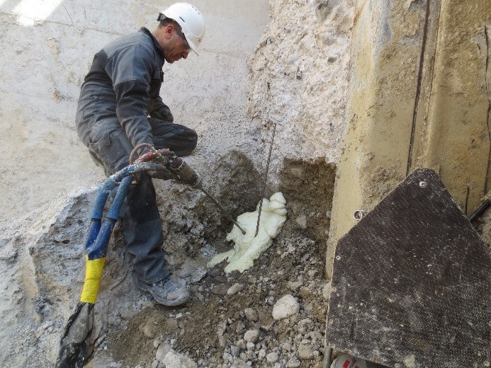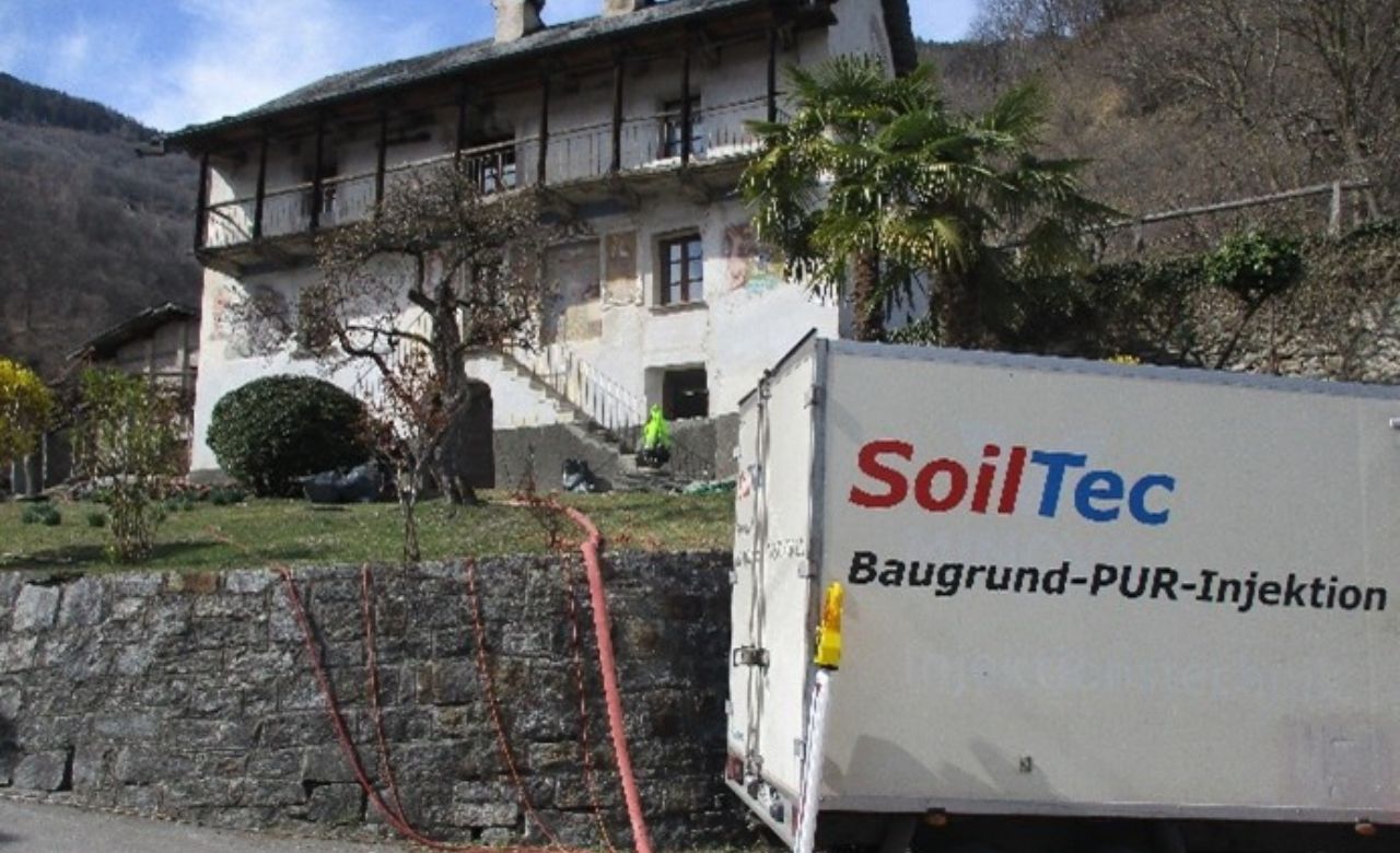 Die kostengünstigste und schnellste Lösung zum Stoppen von Gebäudesetzungen ist die Verfestigung des schlecht tragfähigen Baugrunds unter der Fundation durch PUR-Injektionen.