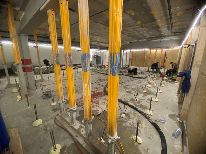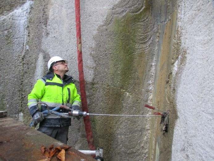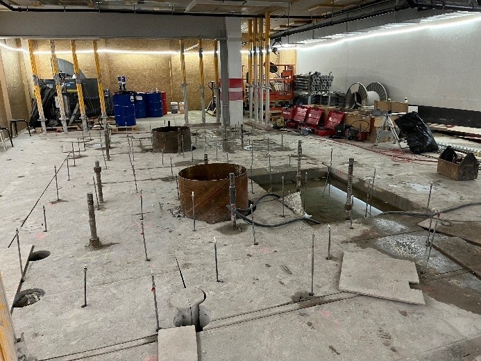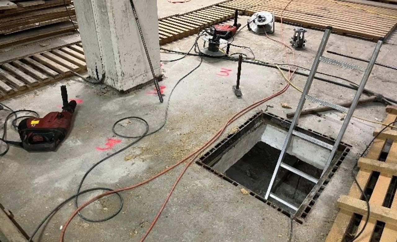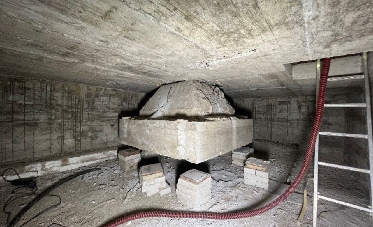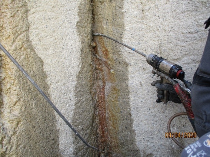 Während der Injektionsarbeiten wird der Baukörper kontinuierlich mit Lasernivellierinstrumenten überwacht. Jede Lanze wird hinsichtlich der injizierten Harzmenge und der eingetretenen Anhebungsreaktion genau protokolliert.